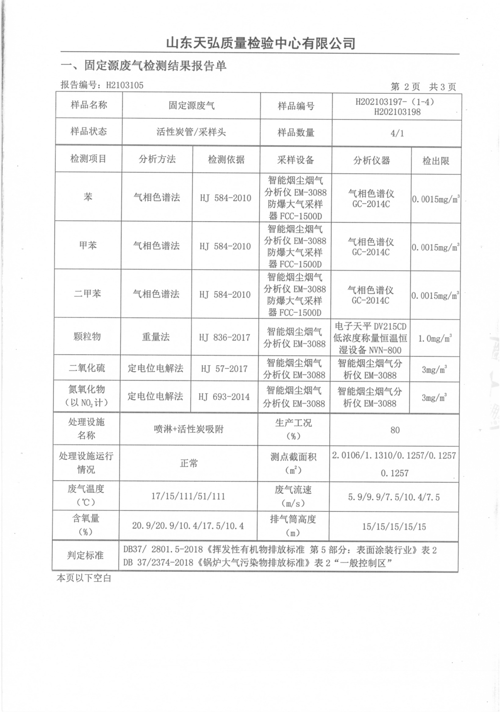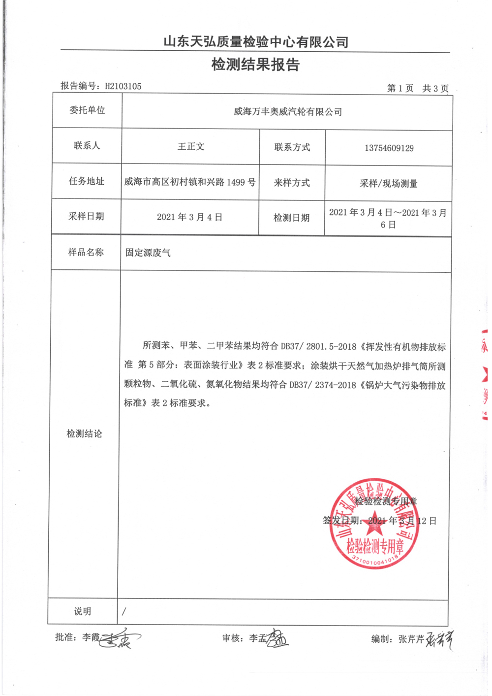 威海萬(wàn)豐奧威汽輪有限公司2021廢氣檢測報告公示